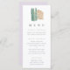 Moderno, rústico e elegante, este menu de casamento mostra uma pintura aquosa de um trecho de uma árvore de ciprestes de um campo de lavanda em Provence, França, pintada com tipografia quic.