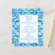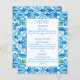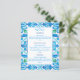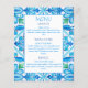 Cartões de cardápio mexicano Talavera cartões de cardápio Aqua Blue Azulejo Talavera azulejos mexicanos elegantes cardápio de casamento modelo, corajoso vibrante cores modernas tipografia casual cardápio de casamento decorado recepção de casamento personalizado