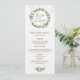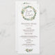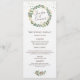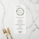 Menu festa de casamento - Este design apresenta uma ilustração aquosa da coroa verde natalícia com morangos vermelhos.