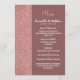 Espelho moderno, elegante e rosa de glitter de ouro cônico e padrão vermelho de blocos de cor marsala, cartões de menu de recepção de casamento. Este design clássico e sofisticado é perfeito para a recepção de casamento clássica, na moda e de tendências. Personalize com seu próprio menu na frente, junto com seus nomes e datas. Então personalize o dorso com seu monograma inicial. Todas as impressão de fotos.