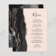 A borda esquerda deste elegante convite de casamento moderno apresenta uma coloração aquosa preta, borda agitada, aparada com falso rosa dourado. O texto personalizável combina o script de escrita manual preto de ardósias e as fontes de impressão em um fundo cor-de-rosa de pincel. O verso apresenta um design de agate preto e rosa dourado correspondente.