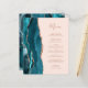 A borda esquerda deste elegante convite de casamento moderno apresenta uma cor azul-lacrimogênea agata borda com falsa rosa dourada. O texto personalizável combina o script de escrita manual poeirado de rosa e as fontes de impressão em um fundo cor-de-rosa pincelado. O verso apresenta um design de gate rosa e lacado correspondente.