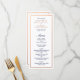 Personalize este Cartões Rack do Menu de Casamento Moderno da Na moda, projetados com borda falsa de cobre e texto azul marinho em um fundo branco. Defina como um modelo para sua fácil personalização. Observe que o cobre neste design é um impressão de cor e não é uma folha metálica.