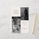 Crie uma primeira impressão significativa do seu casamento com este elegante menu de Casamento de Colagem de Fotos. O design apresenta um layout contemporâneo com uma paleta monocromática que adiciona sofisticação e timeless. O convite é adornado com um trio de fotos que capturam momentos de amor e conexão, perfeitos para compartilhar fotos de noivados ou casais. Apresenta também os detalhes do casamento em formato limpo e refinado, usando uma combinação equilibrada de uma fonte de script para os nomes do casal e um serif clássico para os detalhes do evento. Este na moda apresenta uma mistura harmoniosa de elementos design modernos e elegantes, fazer ideal para casais que querem um toque personalizado, mas polido, para a papelaria do casamento. nota: substitua a foto por suas fotos da sessão de fotos do casamento. M002