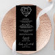 Elevem sua recepção de casamento com nosso elegante cartão de cardápio de casamento com uma design cardíaca e caligrafia moderna. A tipografia fácil de ler garante que os hóspedes possam navegar facilmente no menu enquanto adiciona um toque de sofisticação à sua configuração de mesa. Perfeito para casais modernos que querem impressionar seus convidados com um toque na moda e romântico em seus dias especiais.