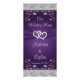 Este cartão de cardápio floral roxo e cinza prateado romântico tem uma imagem de um par de corações unidos sobre uma imagem de fita roxa que atravessa a largura do cartão. Há uma borda prateada simulada no topo e no fundo do menu com uma área de texto roxa escura na frente que tem os nomes da noiva e do noivo, e a data do casamento na cinza abaixo da fita, com o "Menu Casamento" na cinza acima da fita. O verso é cinza com flores roxas arqueadas sobre os detalhes do menu em roxo. Se você precisar de outros itens correspondentes, envie seu pedido por e-mail para niteowlstudio@gmail.com ou use o recurso de bate-papo Zazzle para entrar em contato.