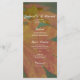 Personalize o Menu de Casamento das Cores do outono natural com os detalhes da refeição que você servirá no almoço de outono de setembro, outubro ou novembro, janto de recepção de casamentos ou poste o brunch de casamento adicionando a salada ou primeiro curso, a entrada ou o segundo curso e a sobremesa ou o terceiro curso. Este cardápio nupcial autóctone personalizado apresenta uma fotografia de natureza digitalmente pintada de folhas de bordo laranja e vermelho-coreanas na árvore com um fundo verde-desfocado de floresta.