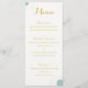 Este belo cardápio é perfeito para o seu próximo casamento num tom de joia ou tema esmeralda e ouro. Dourada inscrição e design simples estão apenas esperando os toques finais do seu delicioso menu. Este design ajustado está perfeitamente dentro de toda a coleção de casamento do Emerald e do Dourado Deco de Arte Moderna; certifique-se de verificar se há convites, listas de assentos, e muito mais!