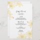 Personalize o bonito Menu de Casamento das Dísias Amarelas Pale com os nomes da noiva e do noivo, a localização do local e os detalhes da refeição que você servirá no almoço da festa do jardim do chá de panela, no janto de recepção do casamento ou no brunch do casamento postado. Sinta-se livre para alterar o texto ou a fonte de acordo com as suas necessidades nupciais. Este elegante menu nupcial floreado personalizado apresenta margaridas amarelas claras enfeitando os cantos com um fundo branco.