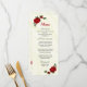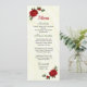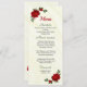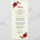 lindas flores vermelhas e folhas verdes no elegante menu de fundo de ouro pálido.