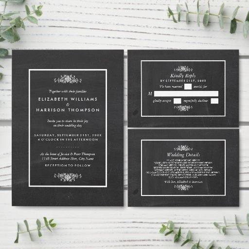 Chalkboard Floral Leaf Wedding CollectionCriado por Fehmi Designs