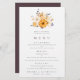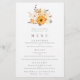Menu de Casamento Foliar de Florais Amarelos. Um preço orçamentário de 5,5" x 8,5", em uma elegante estoque LINEN de 110 lb - para uma sensação de luxo pelo valor do excelente, isso é perfeito para menus, além de convites e programas, etc. Este alternativo de tamanho de orçamento também está disponível em outras opções de papel. O estoque do cartão SEMI-GLOSS de 110 lb tem aproximadamente a mesma espessura do cartão postal, portanto também funciona bem para convites. O papel FELT de 100 lbs é colorido por buff, NÃO branco, então adiciona um toque rústico. O estoque de papel MATTE de 80 lb é branco brilhante, para impressão nítida, excelente para seus menus e programas, enquanto o papel SATIN de 80 lb é fino e leve, ideal para gabinetes. NOTE QUE OS ENVELOPES OPCIONAIS SÃO UM POUCO MAIORES EM TAMANHO A 6,75" x 9" aproximadamente. Um buquê de florais coloridos de verão está no topo e personaliza facilmente o texto abaixo. Uma cinza escura coordenadora está atrás. Você também pode alterar o estilo e as cores da fonte e as cores de fundo na frente e na parte traseira, se desejar, por meio da opção Clique para Personalizar mais.