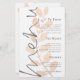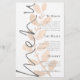 Um preço orçamentário de 5,5" x 8,5", em uma elegante estoque LINEN de 110 lb - para uma sensação de luxo pelo valor do excelente, isso é perfeito para menus, além de convites e programas, etc. Este alternativo de tamanho de orçamento também está disponível em outras opções de papel. O estoque do cartão SEMI-GLOSS de 110 lb tem aproximadamente a mesma espessura do cartão postal, portanto também funciona bem para convites. O papel FELT de 100 lbs é colorido por buff, NÃO branco, então adiciona um toque rústico. O estoque de papel MATTE de 80 lb é branco brilhante, para impressão nítida, excelente para seus menus e programas, enquanto o papel SATIN de 80 lb é fino e leve, ideal para gabinetes. NOTE QUE OS ENVELOPES OPCIONAIS SÃO UM POUCO MAIORES NO TAMANHO AT 6,75" x 9" aprox. Este design moderno tem Menu em um roteiro de cinza elegante que está no lado esquerdo e o resto do texto está alinhado à direita que você pode facilmente personalizar, assim como seus nomes e data de casamento no verso. As folhas de cor de água de conserva, em pêssego, são pintadas de fundo em ambos os lados.