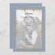Este Menu de Casamento de Folhas Douradas de Foto Moderna Dusty Blue é tradicional e moderno ao mesmo tempo. É um design maravilhoso com sua foto em preto e branco, fontes nítidas, e belas bordas azuis empoeiradas com embelezamentos desenhados à mão, realmente WOW seus convidados. É tão único quanto você é como um casal e vai olhar maravilhosamente para o lugar certo na sua recepção. Este menu pode ser facilmente alterado para refletir o menu que escolheu cuidadosamente para os seus convidados. Para criar seu menu exclusivo, selecione Personalizar este modelo, carregue sua foto (ela se tornará preto e branco automaticamente) e digite suas informações. É muito fácil de fazer e só levará um ou dois minutos. Você vai adorar seus menus.