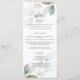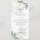 Projetado para coordenar com a nossa coleção de casamento Rustic Greenery, este elegante menu de casamento apresenta uma cor aquosa, folhas verdes de sábado e detalhes de brilho dourado. Personalize-o com o menu de casamento de forma fácil e rápida, basta pressionar o botão personalizar para reorganizar e formatar o estilo e a colocação do texto. Duplo lado. c) O Feliz Cat Studio