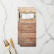 Um belo cardápio de casamento com o nome da noiva e do noivo, a data do casamento e os itens de menu personalizáveis, acentuados com a inscrição manual e a pintura manual de rosquinhas - todos colocados contra um fundo de madeira de celeiro de meteoros. A parte de trás apresenta a sua fotografia e o seu espaço para adicionar uma nota personalizada - ou elimina facilmente a fotografia e a nota. Simples e elegante com um toque de chic rústico - coordena-se lindamente com tantos estilos de casamento de hoje.