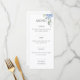 O cardápio azul do casamento da hydrangea estabelece um tom acolhedor, elegante e jovem. Hydrangeas sempre foi uma escolha floral muito popular para casamentos. Esta placa de mesa possui 2 fontes complementares contra fundo branco e um arranjo floral hydrangea no canto superior direito. Personalize este cartão com seus próprios pratos cardíacos. Há espaço suficiente para adicionar pelo menos duas opções para cada curso, minimizando o tamanho da fonte. Bon Appétit