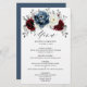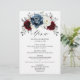 Menu de Casamento de Ivory Boho White Burgundy Blu