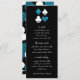 Perfeito para uma noite brilhante de romance de Las Vegas, brilho azul turquesa e menus jantes pretos farão sua recepção brilhar. Não se esqueça de pedir o suficiente para cada lugar!