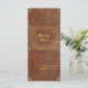 A frente se parece com o cobrir de couro de um livro antigo, e o cardápio é como se estivesse escrito em uma das páginas.