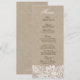 Textura de burlap de linen bege faxineiro e elegante lugar floral branco vintage, modelo de menu de casamento. A combinar com outro material de casamento. Se precisar de ajuda para personalizar qualquer um dos meus designs, entre em contato com o designer do ArtOnWear. Formatação de texto livre com ajuda ao vivo disponível por solicitação.