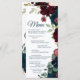 Menu de Casamento de Madeira de Flores Azuis e Mar