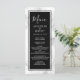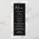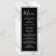 Um design simples, elegante e moderno, com script branco e texto serif em um retângulo preto, delimitado por um padrão de mármore branco.