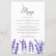 Menu de Casamento de Mola das Flores de Lavanda de