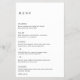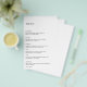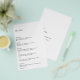O menu de casamento Elegante em preto e branco (impresso no papel do folheto fino) com um layout simples e mínimo. O alinhamento esquerdo dá a este clássico menu de casamento um elemento moderno. Um design mínimo que é excelente se você está tendo um casamento casual ou tradicional / formal.