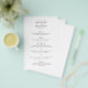 Menu de casamento Elegante de preto e branco (impresso no folheto) com um design simples e mínimo com um grande e grande manto atrás dos nomes da noiva e do noivo em uma fonte serif tradicional. Uma escolha clássica que é perfeita para um casamento formal.