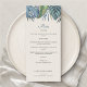 Convide seus convidados para o paraíso por um dia com esta elegante design de palmeiras tropicais. Apresentando um spray de folhas tropicais sorteadas em azuis serenos e verdes e um padrão de ratos estilizados nas costas, essa design incorpora um dia de brisa debaixo das palmeiras. Perfeito para seu caso casual de praia ou celebração de destino nos trópicos. Compre a coleção hoje para o papel de carta correspondente, e vá para o dia perfeito!