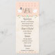Um cartão de cardápio de pássaros doces, com duas pombas brancas, uma feita no chapéu de um cinza e outra veste um véu floral. Adicione seus itens de menu ao fundo de aparência do pergaminho. A parte traseira da placa tem um design cardíaco bolinhas. Flores brancas em galhos de árvores, corações coloridos de corais, flores cor-de-rosa e castanho e um rosa de menta e uma coroa de louro de tulipas ficam em uma borda PALE CORAL PEACHY PINK BLUSH. Trabalho de arte © Chrissy H. Studios, LLC. Todos os Direitos Reservados.