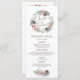 Menu festa de casamento - Este design apresenta uma ilustração aquosa da coroa de Natal com pinhões de abeto, cones, morangos vermelhos e flocos de neve.