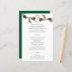 O verde do pinheiro com rosas brancas faz um elegante menu de janto de recepção de casamento floral para uma data de casamento no inverno. Mais acentuado com bagas sutis e cones de pinho.