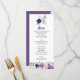 Rosas de aquarela elegantes e românticas em tons de roxo e lavanda com menus de casamento verdes.