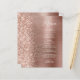 Este elegante cardápio moderno de casamento apresenta uma falsa borda brilhante de diamante em um fundo de metal esfregado em ouro rosa. O texto personalizável combina o script branco de escrita manual e as fontes sans serif. O rosa dourado, o metal escovado e o design reluzente, são repetidos no verso.