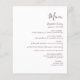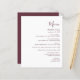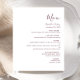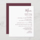 Este simples cardápio moderno de casamento mostra um texto arrojado em fundo branco. A palavra "Menu" aparece na caligrafia na moda. Adicione o nome do casal e a data do casamento em script e itálico, juntamente com os detalhes do menu na fonte sans serif. O lado inverso é uma sombra de burgundy sólida.
