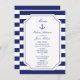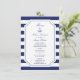 Perfeito para o seu casamento temático náutico, este menu apresenta uma âncora azul-marinho clássica com corda e um fundo listrado azul e branco. Personalize os nomes da noiva e do noivo, bem como as seleções de menu.