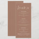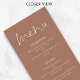 Menu de Casamento de Texto Branco e Castanho Suave Imprimível. Disponível digitalmente e impresso. Uma tipografia informal em preto para o título principal Menu que complementa o resto do texto que você pode facilmente personalizar.