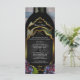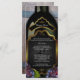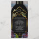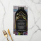 Um fundo rústico ajustado bem em um vinhedo ou adega temido casamento. Uma garrafa de vinho fica em frente a um barril de vinho rústico e com uvas de vinho ao seu redor. O menu impressão no próprio rótulo do vinho. Nomes dos casais e data do evento impressão do barril de vinho no verso. Disponível com produtos correspondentes. com