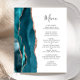 A borda esquerda deste elegante convite de casamento moderno apresenta uma cor azul-lacrimogênea agata borda com falsa rosa dourada. O texto personalizável combina o script de escrita manual de cinzas de carvão e as fontes de impressão em um fundo branco. O verso apresenta um design de gate rosa e lacado correspondente.