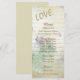 Este cartão de menu elegante apresenta um fundo antiquado de imagens florais de cor d'água em verde e ouro sobrepostas a uma letra de amor bem escrita à mão. O design é trazido para a era atual com um texto estilístico, AMOR em ouro. O texto personalizado do menu está em cinamão castanho. A parte traseira do cartão de menu é dourado claro. Este cartão combina com o convite de casamento do "Love Nunca Falhou" na nossa loja. Linda!
