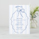 Menu de Casamento de Arco Desenhado à Mão Azul com fonte de estilo manuscrito e faixas azuis claras. Adicione uma nota de agradecimento ao contrário