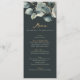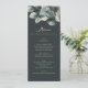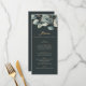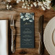 Este cartão de mesa de menu elegante apresenta um design na moda com "Menu" gravado num guião ouro refinado, complementado pelos nomes do casal e pela data de casamento abaixo de uma letra serif clara. Cada título do curso é exibido lindamente no mesmo roteiro dourado, com os detalhes do prato seguindo uma fonte sofisticada e minimalista serif. Adorado com delicadas folhas de eucalipto sobre um fundo verde escuro, este cartão adiciona um toque luxuoso e inspirado na natureza à experiência de jantar. Perfeito para casamentos, recepções ou comemorações especiais, este cartão de menu combina elementos botânicos modernos com um design elegante e eterno.