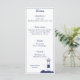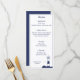 Menu de casamento elegante e simples com uma ilustração de um farol em tons azuis marinho para um casamento de tema marinho e náutico!