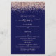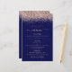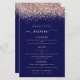 Marinho Elegante de Orçamento Rosa de Leitura Dourada de Leitura de Script com Largura no Menu Blue Wedding. Um preço orçamentário de 5,5" x 8,5", em uma elegante estoque LINEN de 110 lb - para uma sensação de luxo pelo valor do excelente, isso é perfeito para menus, além de convites e programas, etc. Este alternativo de tamanho de orçamento também está disponível em outras opções de papel. O estoque do cartão SEMI-GLOSS de 110 lb tem aproximadamente a mesma espessura do cartão postal, portanto também funciona bem para convites. O papel FELT de 100 lbs é colorido por buff, NÃO branco, então adiciona um toque rústico. O estoque de papel MATTE de 80 lb é branco brilhante, para impressão nítida, excelente para seus menus e programas, enquanto o papel SATIN de 80 lb é fino e leve, ideal para gabinetes. Um script de na moda com alternâncias para o Menu do cabeçalho e uma borda falsa da brilha no topo de ambos os lados em rosa dourado. Personalize facilmente o resto do texto para seus próprios detalhes, o que inclui alternativos para suas opções vegetarianas ou vegetarianas.