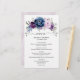 Elegante azul púrpura Lilac lavanda floral tema floral menu de casamento com buquê elegante de azul poeirento, Marinho, púrpura, cor lilac flores rosa e folhas verdes de eucalipto sábio. Entre em contato comigo para obter ajuda sobre a personalização ou se você precisar de outro produto com este design.