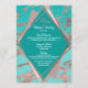 Menu de Casamento do Mármaco Verde-Teal rosa Doura