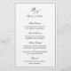 Menu de Casamento do Monograma Branco e Preto Eleg