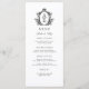 Crest do Monograma Negro e Branco, menu de casamento. Vintage inspirou a crista do monograma barroco Regency-Era. Recursos, um elegante design de tipografia branco e preto limpo.